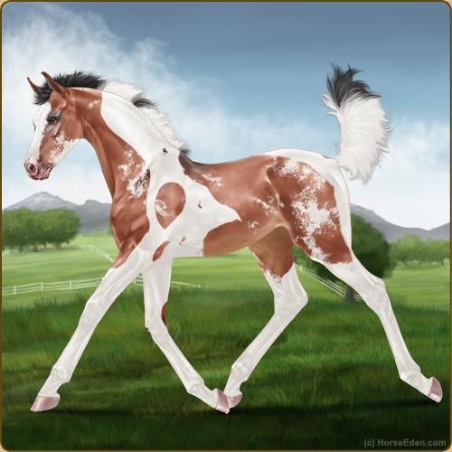 Color: Blood Bay Dun Tobiano Sabino