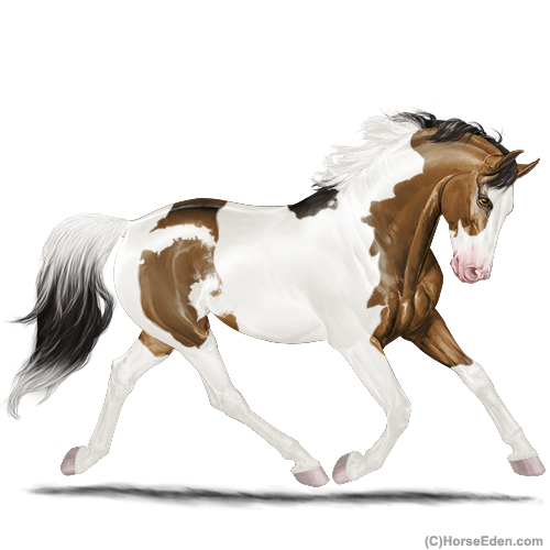 Color: Mahogany Bay Dun Tobiano Splash White Sabino Frame