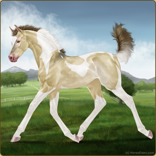 Color: Amber Creme Dun Tobiano Rabicano