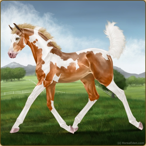 Color: Flaxen Chestnut Tobiano Sabino