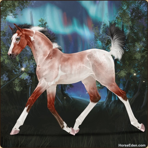 Color: Blood Bay Roan Tobiano Rabicano