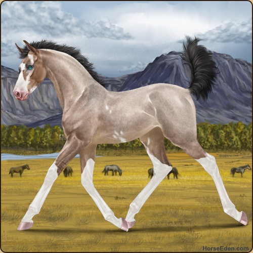 Color: Mahogany Bay Roan Dun Splash White Sabino