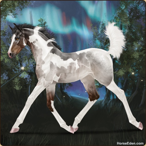 Color: Brown Roan Tobiano Rabicano