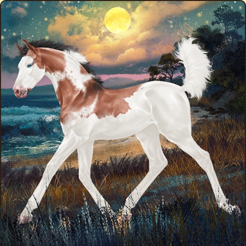 Color: Blood Bay Dun Tobiano Splash White Sabino