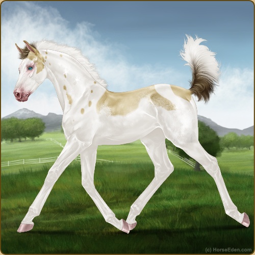 Color: Amber Champagne Tobiano Splash White Sabino Rabicano