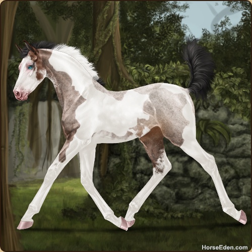 Color: Brown Roan Tobiano Splash White Sabino Frame