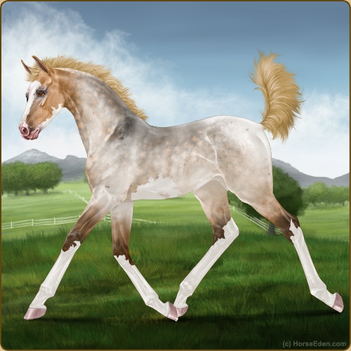Color: Flaxen Red Roan Dun Sabino