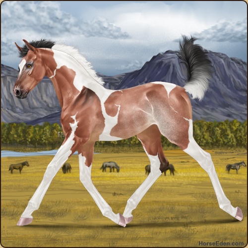 Color: Blood Bay Dun Tobiano Rabicano