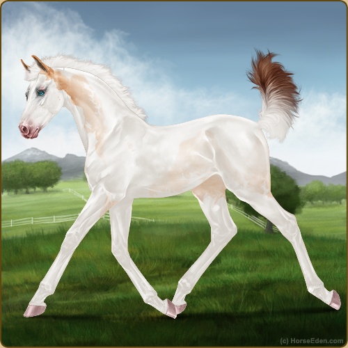 “ Pearl is a dilution factor that only shows up in the presence of a single creme gene, or if the horse is chestnut-based (ee) and has 2 copies of it. Black, Bay and Brown horses can hide pearl. Champagne horses without a creme gene will also hide pearl”