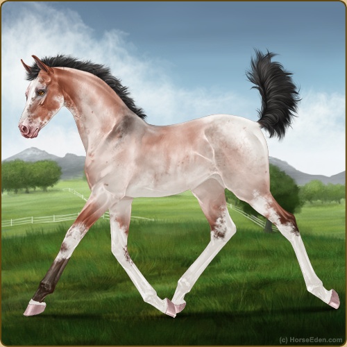 Color: Blood Bay Roan Dun Sabino