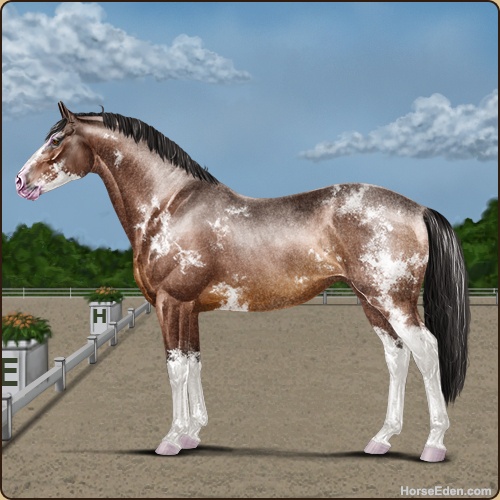 Color: Mahogany Bay Roan Splash White Sabino