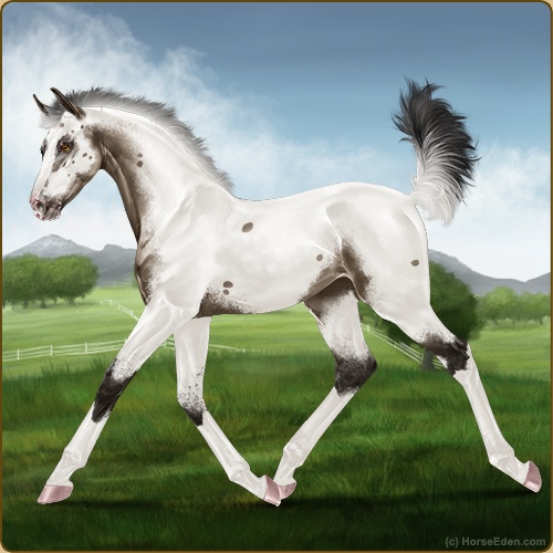 Color: Grullo Varnish Fewspot Appaloosa