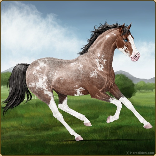 Color: Mahogany Bay Roan Splash White Sabino
