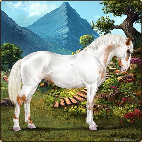 Color: Flaxen Red Roan Varnish Fewspot Appaloosa