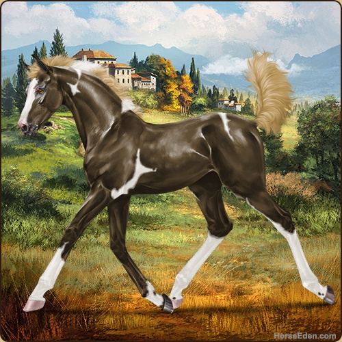 Color: Dark Flaxen Liver Chestnut Tobiano Appaloosa