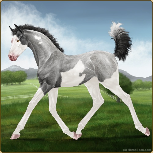 Color: Smokey Blue Roan Splash White Frame Appaloosa