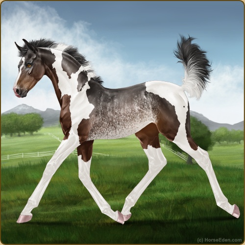Color: Brown Tobiano Rabicano