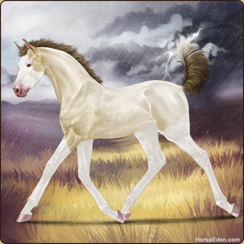 Color: Amber Champagne Roan Splash White