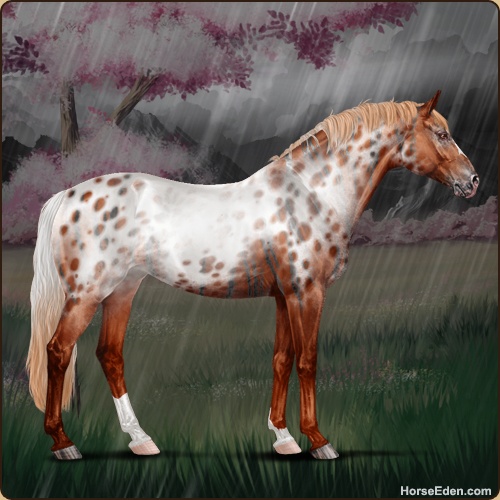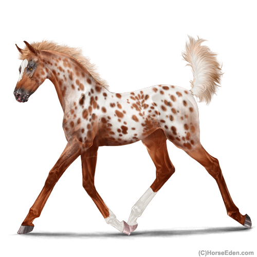 Color: Chestnut Varnish Near Leopard Appaloosa Brindle
