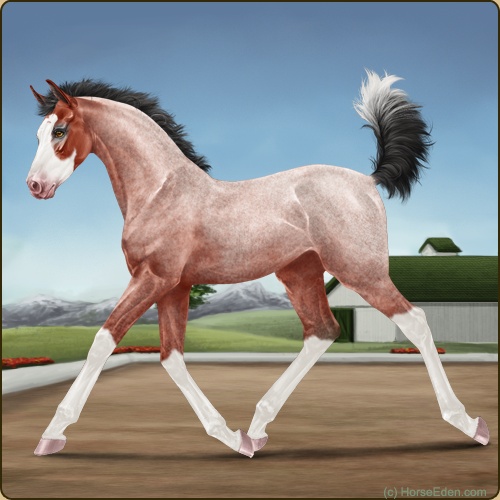 Color: Blood Bay Roan Splash White