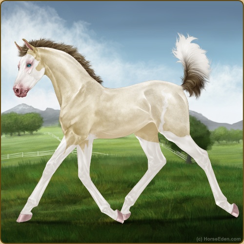 Color: Amber Champagne Roan Splash White Sabino