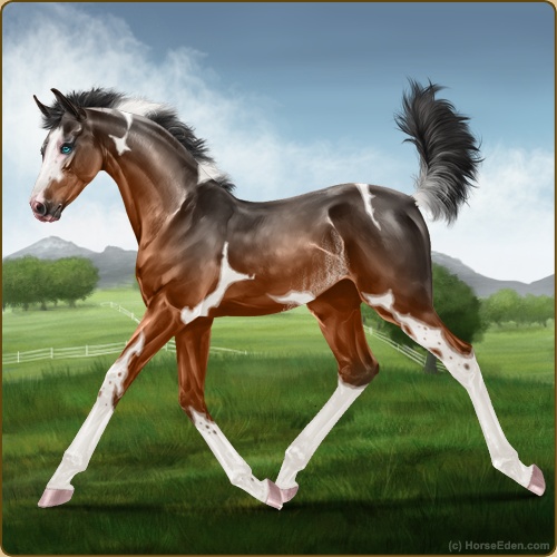 Color: Light Bay Tobiano Splash White Rabicano