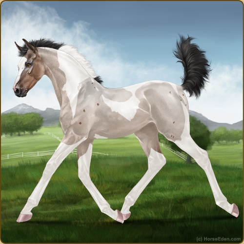 Color: Mahogany Bay Roan Dun Tobiano