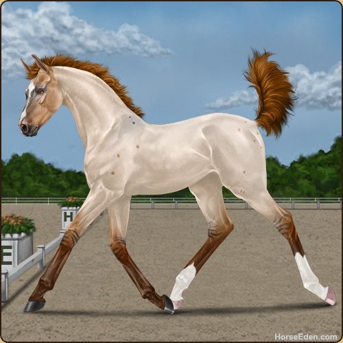 Another fun one. I thought she was like, Golden Buckskin under Grey at first glance, til I saw her legs. A very pleasant breed-up prospect ♡