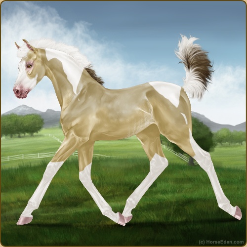 Color: Amber Champagne Tobiano Splash White Rabicano