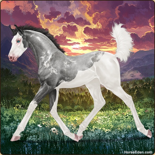 Color: Smokey Blue Roan Splash White Sabino