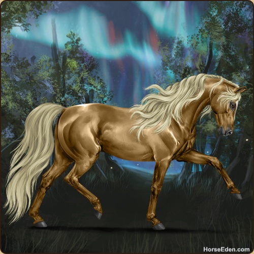 Irl I got a new horse! He is a dark palomino. He's a Missouri Fox Trotter, purebred. He has really good show lines. His name is Rapidan (Rap-ih-dan) He's 15.3 hands. Supposedly he won't spook at anything, so he’ll be a good ride… He’s 21.