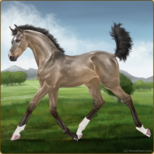 Irl I got a new horse! He is a dark palomino. He's a Missouri Fox Trotter, purebred. He has really good show lines. His name is Rapidan (Rap-ih-dan) He's 15.3 hands. Supposedly he won't spook at anything, so he’ll be a good ride… He’s 21.