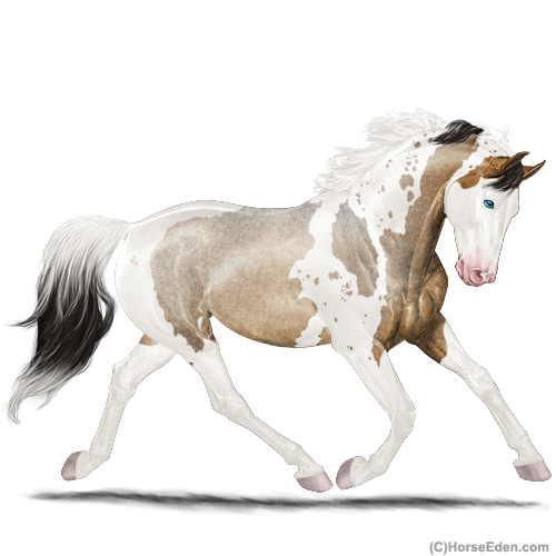 Color: Mahogany Bay Roan Dun Tobiano Splash White
