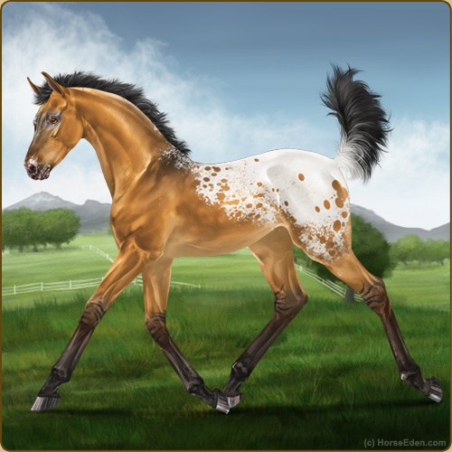 Color: Golden Bay Dun Varnish Blanket Appaloosa