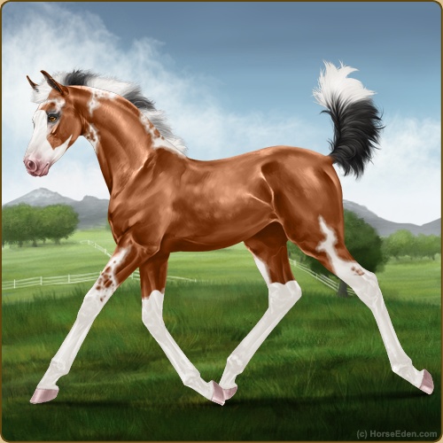 Color: Light Bay Tobiano Splash White