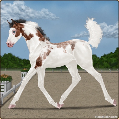Color: Mahogany Bay Tobiano Splash White Rabicano Frame Frost Appaloosa