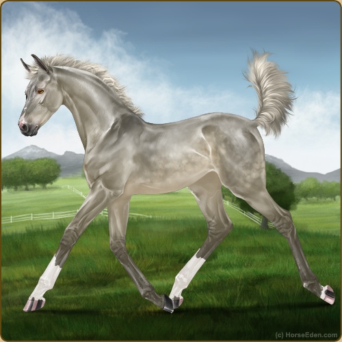 Another fun one. I thought she was like, Golden Buckskin under Grey at first glance, til I saw her legs. A very pleasant breed-up prospect ♡