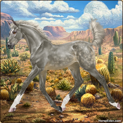 Another fun one. I thought she was like, Golden Buckskin under Grey at first glance, til I saw her legs. A very pleasant breed-up prospect ♡