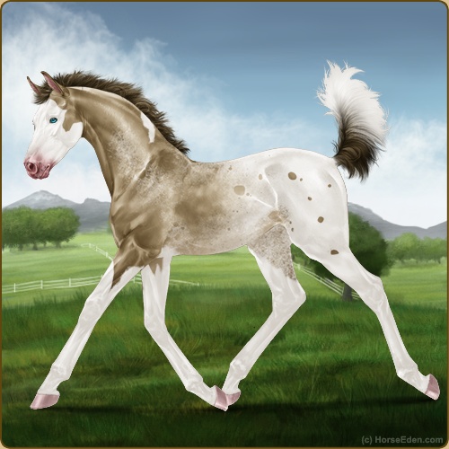 Color: Sable Champagne Tobiano Splash White Sabino Blanket AppaloosaHorse Nbr: 43561019Breed: Sport PonySex: FillyBirthdate: February 5, 2026Age: 1Birth Year: 199Height: 10.3 Hands