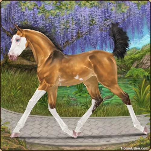 Color: Golden Bay Dun Splash White Sabino