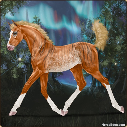 Color: Flaxen Chestnut Splash White Rabicano Brindle