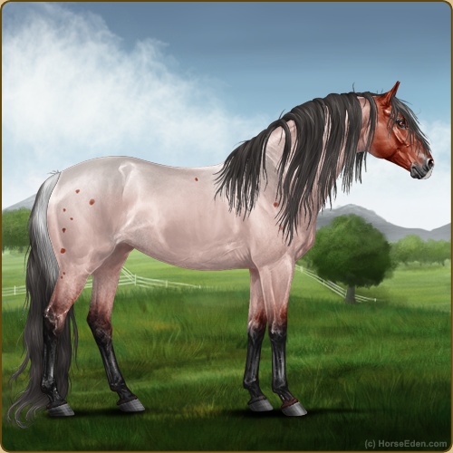 Color: Blood Bay Roan Rabicano