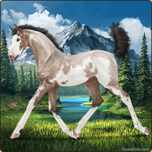 Color: Mahogany Bay Roan Dun Splash White Frame
