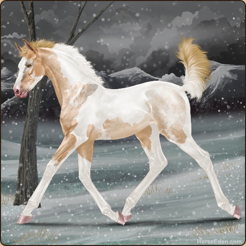 Color: Flaxen Red Roan Dun Tobiano Sabino
