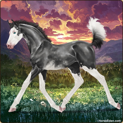 -HEE Click- Of course the most random breeding I do just to have some cannon fodder is the one that gives me a filly with an interesting coat pattern...