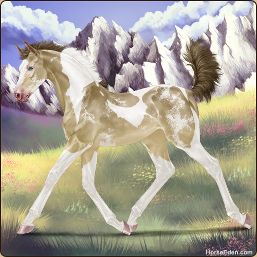 Color: Amber Creme Pearl Tobiano Sabino