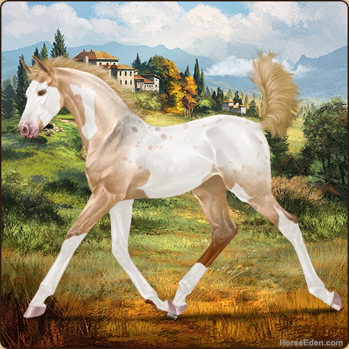 -HEE Click- Of course the most random breeding I do just to have some cannon fodder is the one that gives me a filly with an interesting coat pattern...