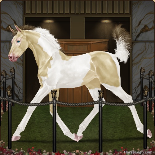 Color: Amber Creme Pearl Tobiano