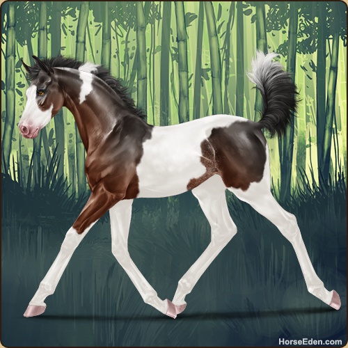 Color: Mahogany Bay Tobiano Splash White Rabicano