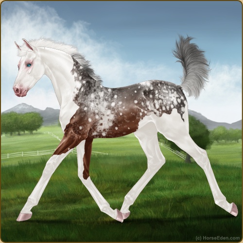 Color: Mahogany Bay Splash White Varnish Snowflake Appaloosa